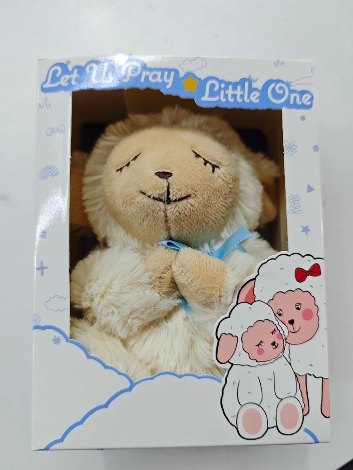 Thoughtful Christening and Baptism Gifts for boys - Adorable 7" praying stuffed animal lamb combined with baby prayer book makes a great bedtime set. And this lovely designed plush toy lamb will be baby's favorite bedtime buddy for years!