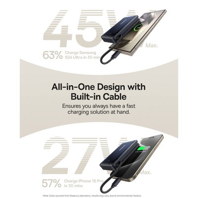 Baseus Nomos Qi2 45W 10000mAh Magnetic Power Bank with Built-In USB-C Cable - Black