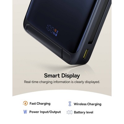 All-in-Power Bank: This Upgraded Portable charger is your travel essential, featuring a 10,000mAh power bank, a foldable charger, Informative Smart Display and a built-in USB-C cable, designed to keep you powered, help you get through a day without having to be tied to a wall.