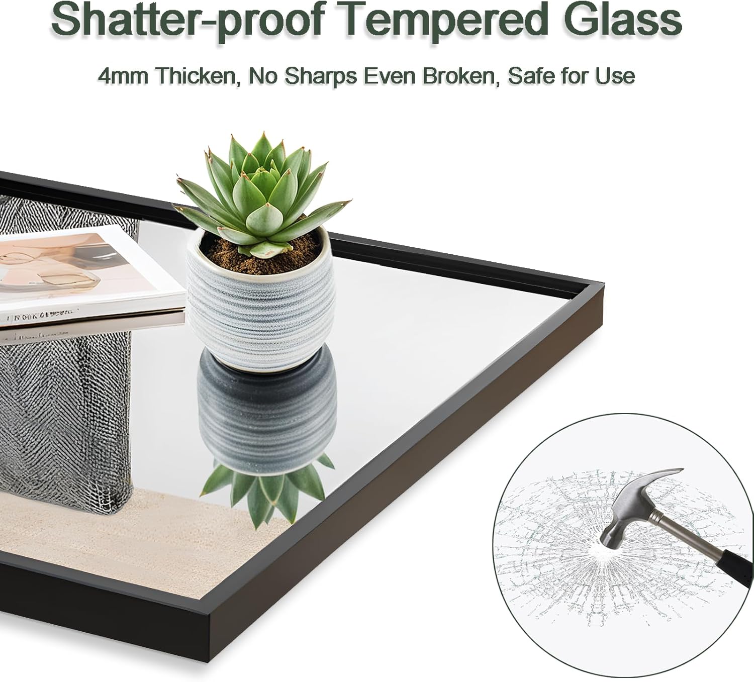 【Safe & Secure Package】 The package for this wall mounted bathroom mirror is well and securely designed for mirrors. With all-around protective Styrofoam with passed drop test. However, mirrors are fragile items, if the wall mirror you received is damaged, We will be responsible for it.