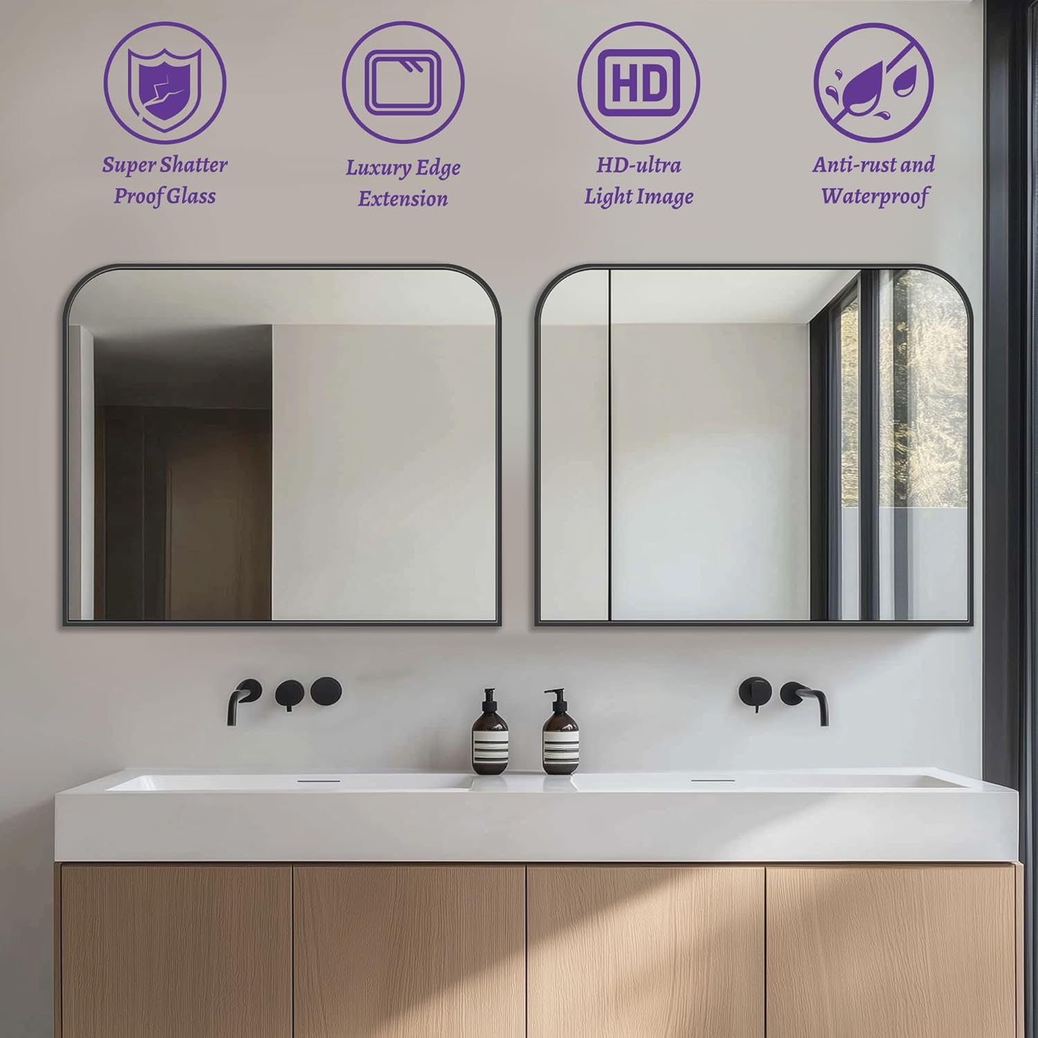 Bathroom Mirror, Wall Mirrors, Black Metal Framed Wall-Mounted Mirrors, Bathroom Vanity Mirror for Over Sink, Living Room, Bedroom, Entryway, 40x30 Inch, Black