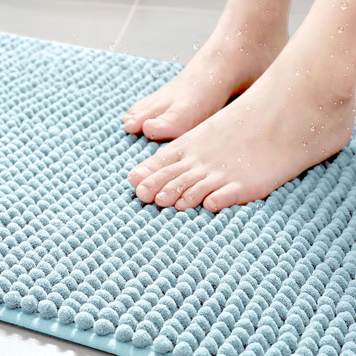Bathroom Rug Mat,Luxury Chenille Super Soft Absorbent Rug,Non-Slip Quick Dry Microfiber Mats,Machine Washable Rubber Backing Bath Mat,Bath Rug Mats for Floor,Tub and Rain Showers (Blue-24"x36")