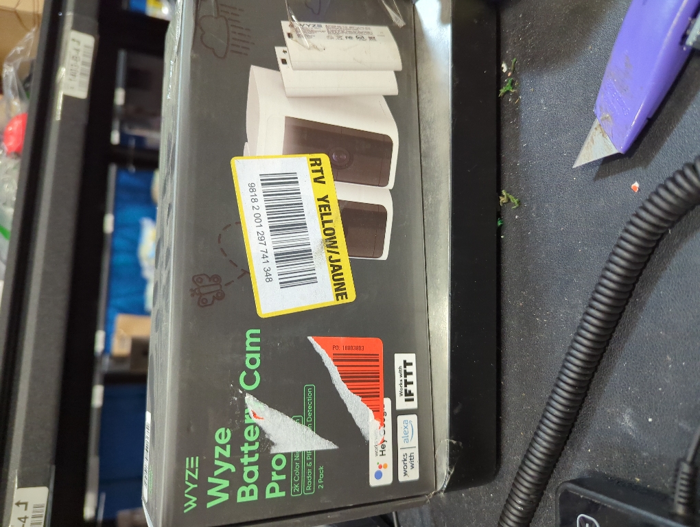 WYZE Battery Cam Pro-simply the best wireless outdoor camera WYZE has ever made, with upgrades on every feature, from 2K HD video with Color Night Vision to a removable, easy-to-recharge battery. But Battery Cam Pro takes it even further with new features like a built-in, automated spotlight and Deep Sense Radar Detection, which not only knows exactly where and how fast objects are moving, but also saves you precious battery life by eliminating the need to constantly run the camera. Get alerted when motion is detected, now with a wider, 134° field of view, and set custom motion detection zones for only the alerts that matter to you. Plus, take advantage of the usual built-in features like a motion-activated siren, two-way audio, and voice commands through Google and Alexa. Best of all, it's easy to mount, has a 6-month battery, and you can even connect it to WYZE Solar Panel to eliminate the need to recharge ever again.. Camera Connection: Wireless Cameras. Camera Product Type: Standard. Camera Resolution: 4MP. Camera Technology: IP. Camera Type: Spotlight. Color Family: White. Color/Finish: White. Connectivity: Wireless (Wireless Network Transmission). Features: 2-Way Audio,Audio Alert/Siren,Battery Backup,Built-in Microphone,Built-in Speaker,Indicator Light,Motion Sensor,Night Vision,Remote Access,Smartphone Compatible,Wall Mountable,Weather Resistant. Field of View: 135 Degrees. IP Rating: Weather Resistant. Image Sensor Type: CMOS. Included: Batteries,Battery Charger,Mounting Hardware. Indoor/Outdoor: Indoor,Outdoor. Lumens: 150. Microphone: Two-Way Audio. Night Vision Distance (ft.): 30. Night Vision Range (ft.): 30 ft. Pack Size: 2. Power Options: Battery. Power Source: Battery Operated. Power Source: Battery Operated,Solar. Product Weight (lb.): 0.94 lb. Recording Storage: Cloud,SD Card. Remote Access: Remote Access. Requires Hub?: No Hub Required. Resolution: 4MP (1440p). Returnable: 90-Day. Rotation Direction: Fixed. Smart Home: Smart Home Enabled. Smart Home Protocol: Wi-Fi. Storage Capability: Cloud,SD Card. Video Signal: Digital. Voice Control Hub Required: No Hub Required for Voice Control. Voltage (V): 5 V. Works With: Alexa, Alexa, Google, Google Assistant, IFTTT. Certifications and Listings: UL Certified. Product Depth (in.): 1.8 in. Product Height (in.): 3.5 in. Product Width (in.): 2.5 in. Power Source: Solar. Features: Motion Sensor. Power Source: Battery Operated