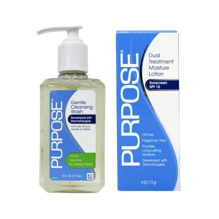 Two Distinct Products: Includes Purpose Gentle Cleansing Wash (6 fl oz) for effective daily cleansing and Dual Treatment Moisture Lotion with SPF 10 (4 oz) for hydration and sun protection. Dermatologist Developed: Both items are designed by dermatologists to be gentle on sensitive skin, providing thorough cleansing and moisture without irritation. Safe and Effective Formulas: The cleansing wash is oil-free, soap-free, and sulfate-free, while the lotion is oil-free, fragrance-free, and offers SPF 10, perfect for a complete, gentle skincare routine.