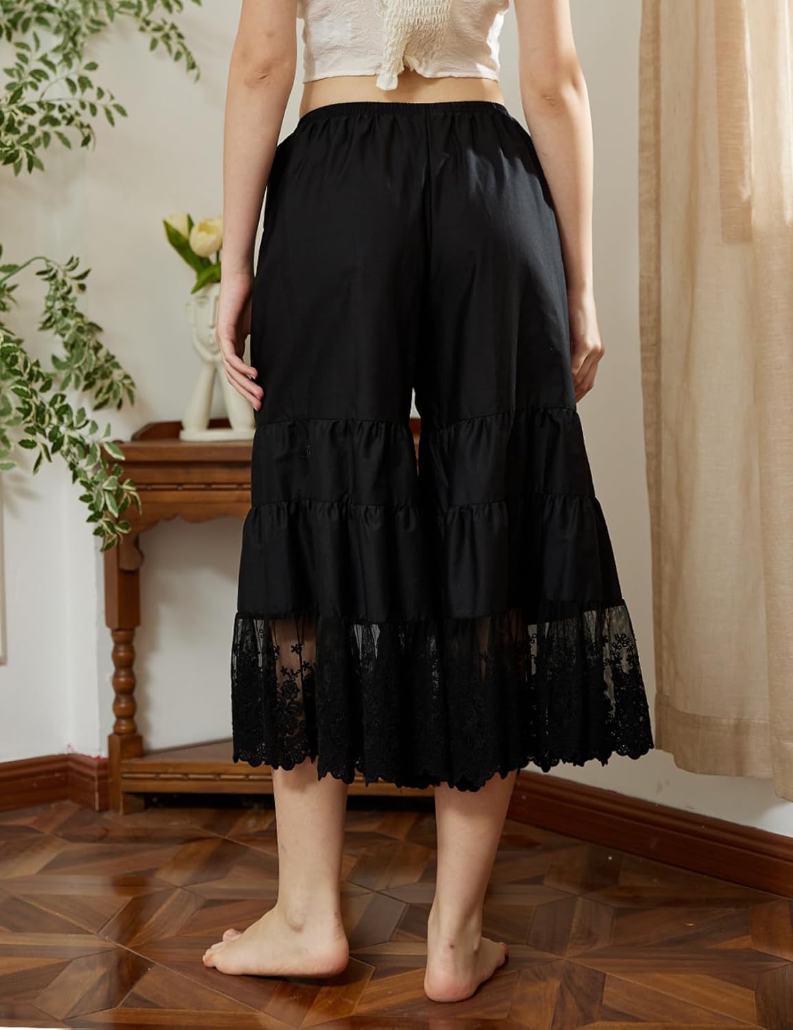 ★ WIDE LEG & LACE HEMLINE -- The design of wide leg will not tight the legs, offers a roomy and airy and relax feeling. The floral eyelet lace hem, looks more beautiful and elegant and feminine, it’ll be the attractive spot light when wear it as skirt extender or slip. Never mind for the stumble.