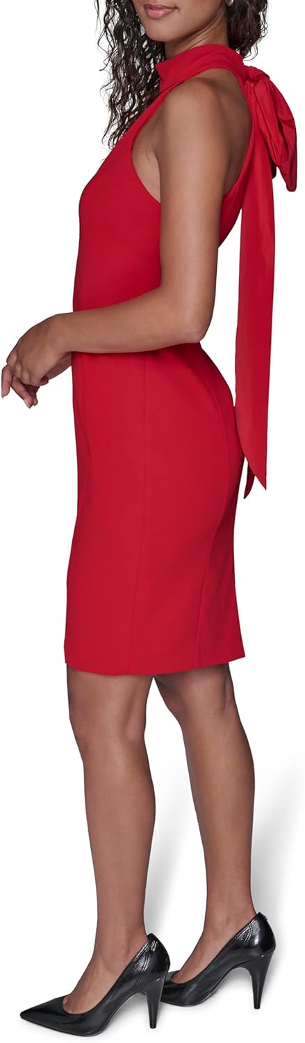 BeBe Women's Sleeveless Halter Taffeta Scuba Crepe Dress