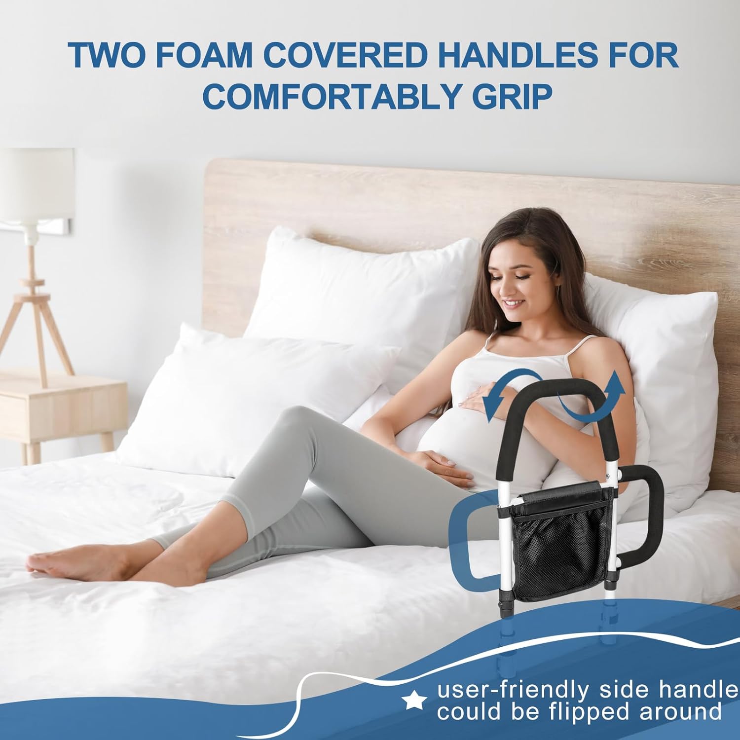 Bed Rails for Elderly Adults Safety with Storage Pocket, Assist Rail with Dual Grab Bars for Easily Getting in & Out of Bed, Bed Rail Fits King, Queen, Full, Twin Bed,Support Up to 300lbs