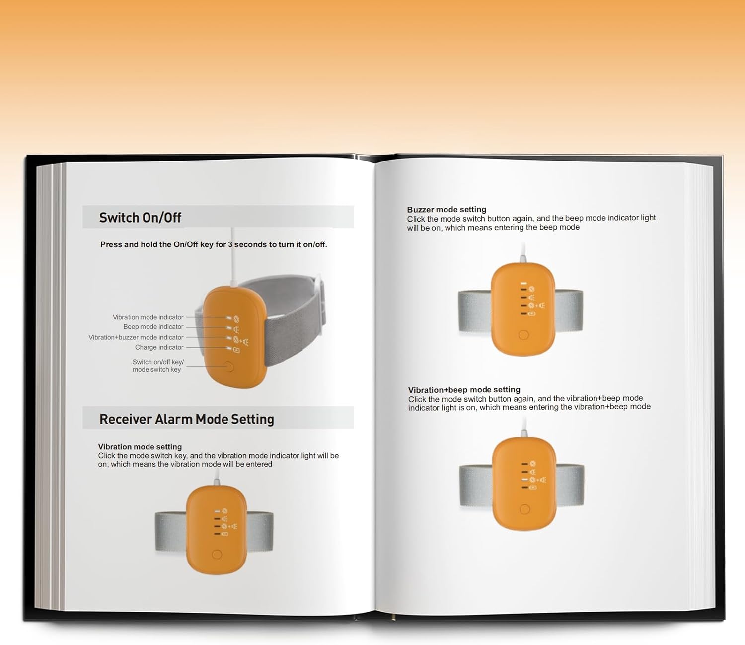 [Three Alarm Modes:]Provide sound and vibration and sound vibration three ways,bedwetting alarm can be easily adjusted for you to choose,the alarm is loud but not hurt the ear,do not worry about disturbing.