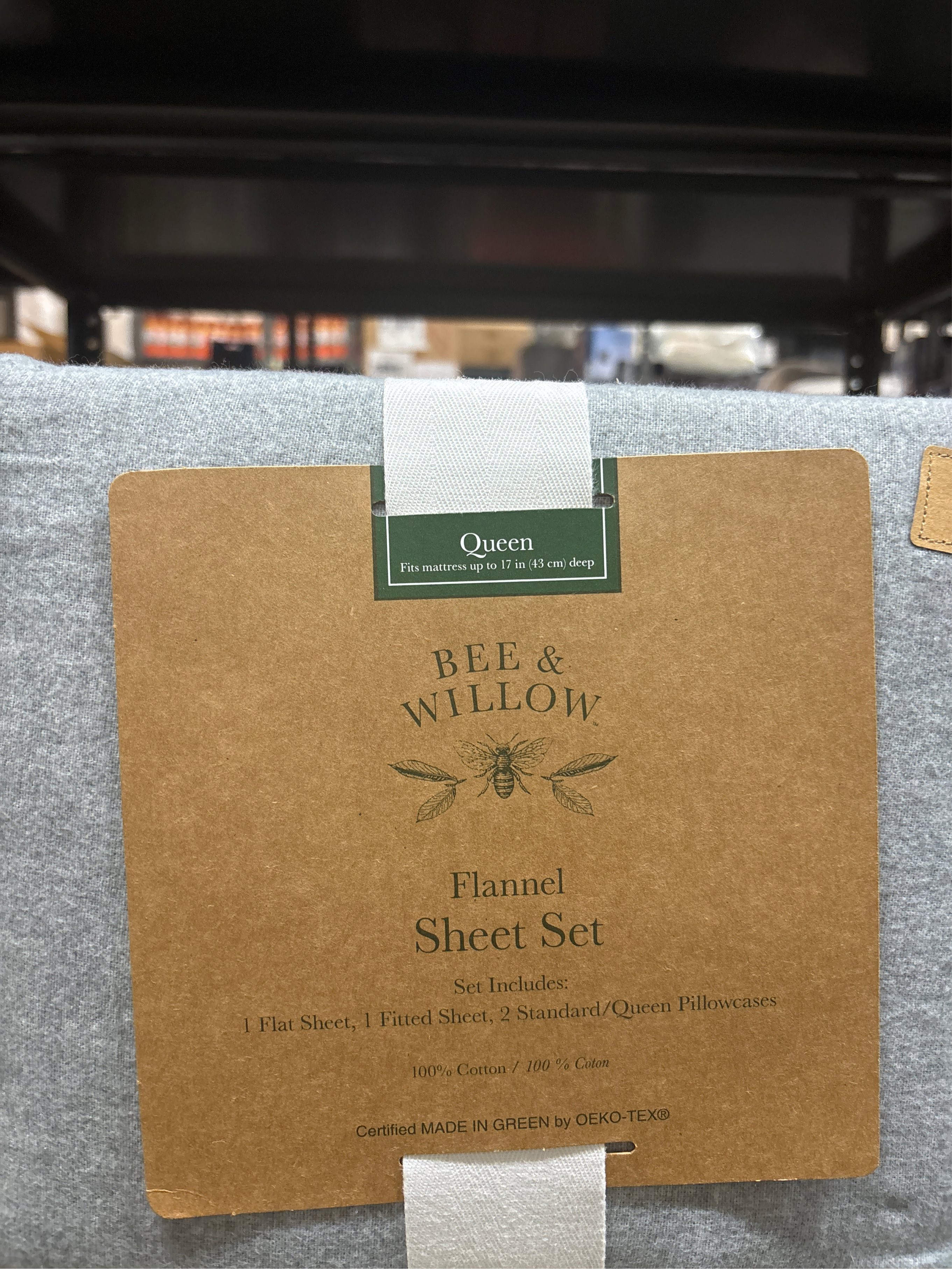 Bee & Willow Cotton Flannel Queen Sheet Set in Heather Grey