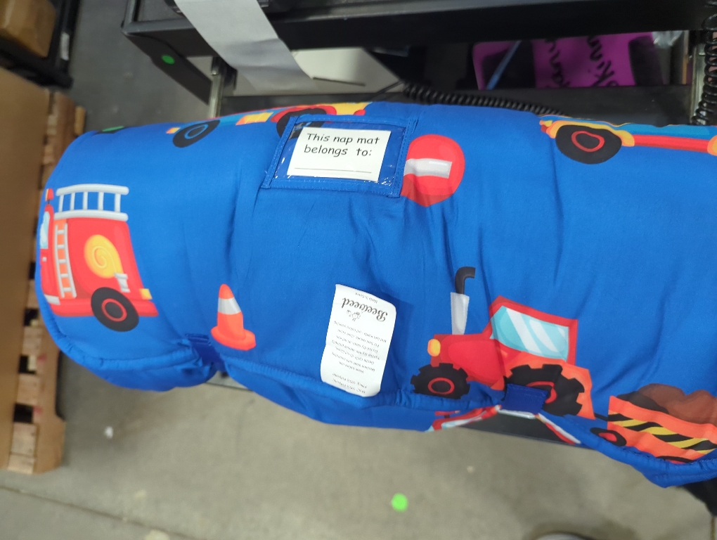 CONVENIENCE DESIGN - We designed hook & loop and handles for kid sleeping mat, and children can easily roll it up (see Figure 6). At the same time, toddler sleeping bag has a built -in name tag, which can easily identify
