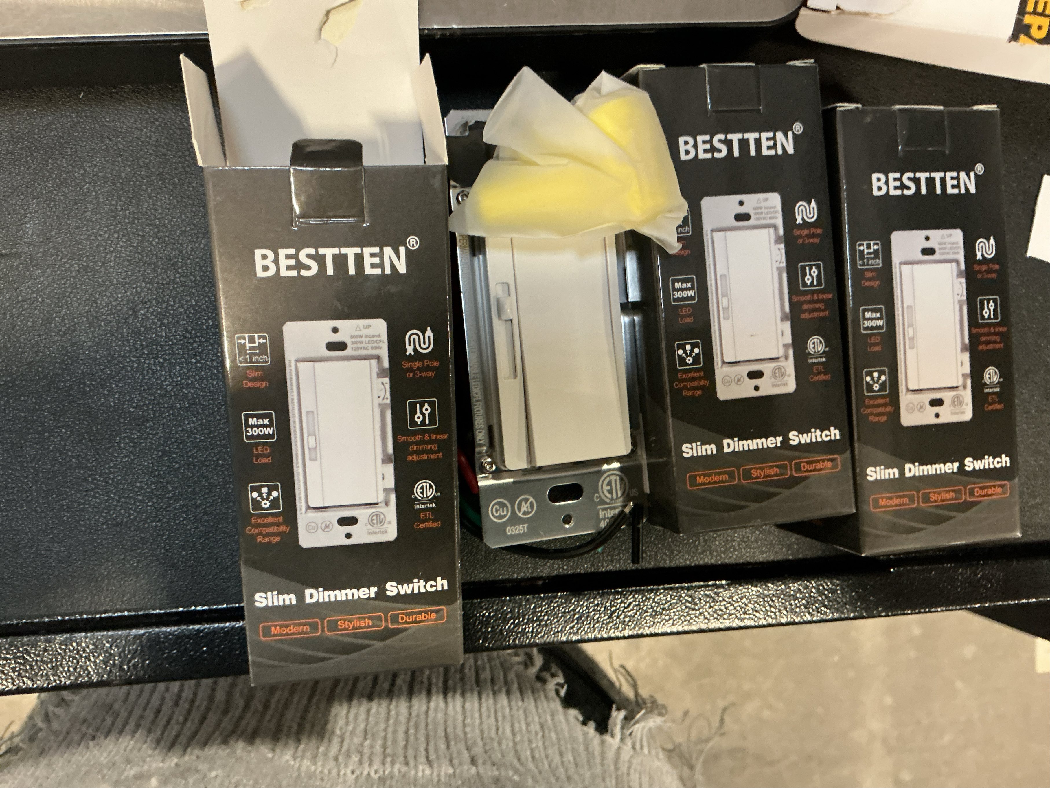 BESTTEN 3 Pack Slide Dimmer Light Switch, Quiet Rocker, Super Slim Single Pole or 3 Way Dimmable Switch, Max 300W LED, CFL, 600W Incandescent, ETL Listed, White