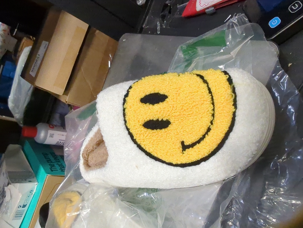 Bevaney Smile Face Slippers for Women - Soft Plush Retro Preppy Slip-on Comfortable Indoor/Outdoor Shoes (yellow size 8.5 - 9)