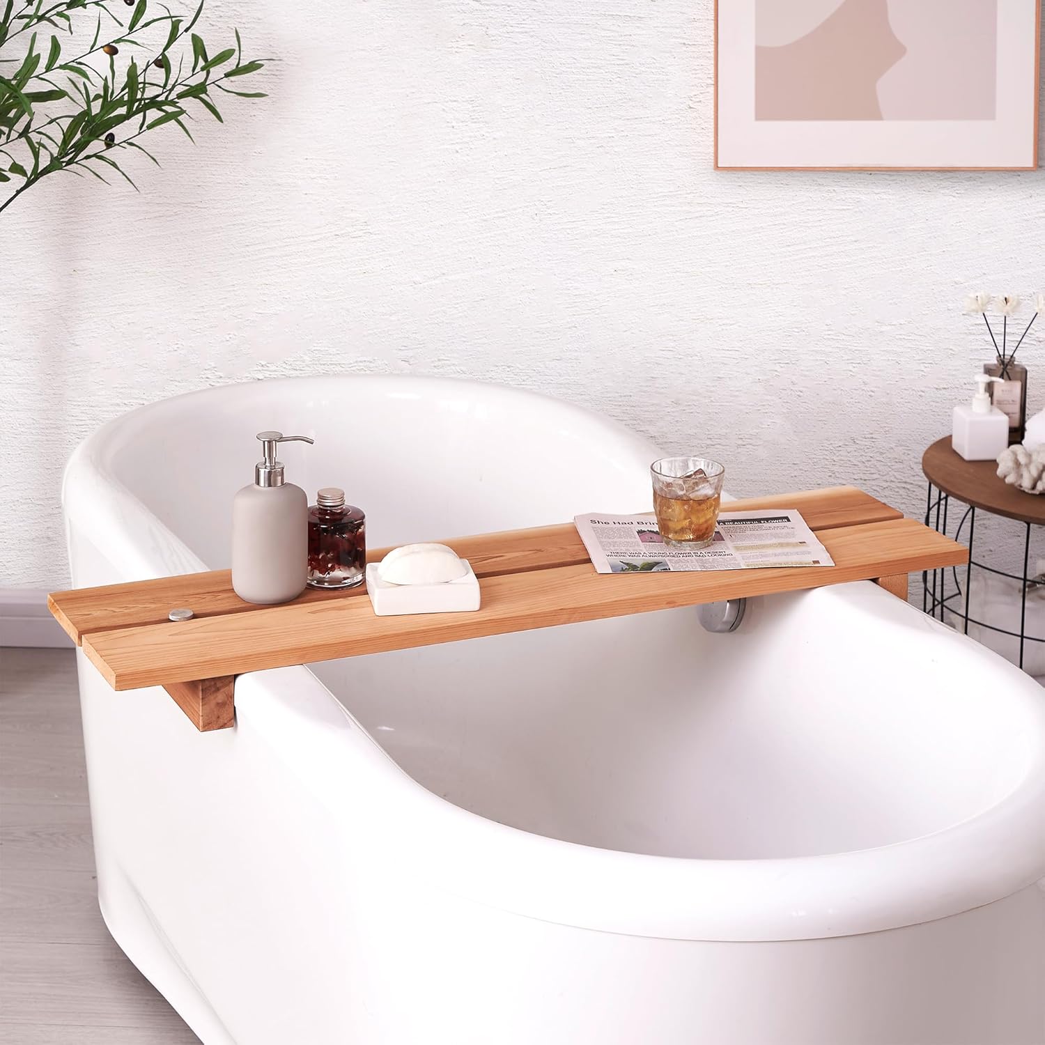 bingaai Cedar Wood Bathtub Tray 39 Inch, Adjustable Wooden Bath Tray for Tub, Wood Bath Caddy Tray for Bathtub, Bath Tray Table for Luxury Bath, Embrace Simplicity and Savor Your Soaking Moments