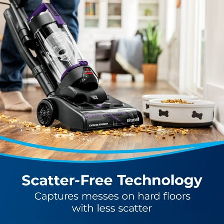 TESTED EVERY PURCHASE SAVES PETS. BISSELL proudly supports BISSELL Pet Foundation and its mission to help save homeless pets. FULL SIZE POWER, COMPACT DESIGN. Powerful suction in a lightweight and compact vacuum. SCATTER-FREE TECHNOLOGY. Captures messes on hard floors with less scatter. QUICK RELEASE EXTENSION WAND. Easily clean on and above floors. EASY EMPTY DIRT CONTAINER. Dispose of debris with a push of a button. EDGE-TO-EDGE CLEANING. Clean closer to edges and corners. SPECIALIZED PET TOOLS. Comes with a dusting brush, crevice tool and Pet TurboBrush tool to clean stairs, upholstery and more.