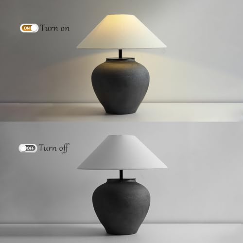 Black and Cream Farmhouse Table Lamps Black 18.8" Tall Ceramic Table Lamp Rustic Southwestern Clay Pot Ceramic Lampshade with Fabric Shade Bedside Nightstand for Living Room Bedroom House Office Entryway (Black)