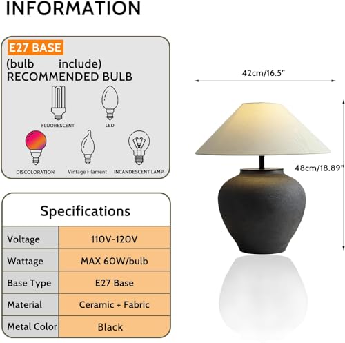 ????【Wide Application & Great Gift】-Farmhouse hand-craft ceramic nightstand lamp for home office is suitable for scene decoration of various styles. Perfect for living room, dining room, bedroom, balcony, hallway, entryway, college bookcase etc. This black table lamp is also an awesome gift for a birthday, Mother’s Day, or festive decorations for home