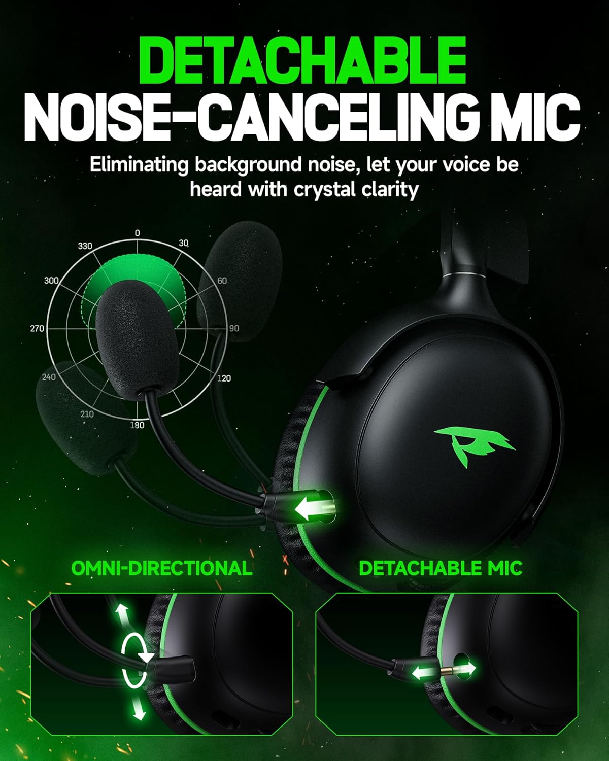 【Detachable ENC Noise-Canceling Microphone & One-touch Mute】KOFIRE Xbox Series X headset equipped with a detachable 360° omnidirectional mic. Our Xbox headset can accurately calculate the speaker's direction, preserving the target voice while eliminating background noise for improving call quality. Ensure your voice are relayed in high-definition clarity to your teammates. The microphone can be easily removed when not in use, making the headset more versatile for various activities like listening to music or watching movies. Moreover, the one-touch mute capability enables seamless transitions between gaming and other activities, ensuring gamers can focus on their tasks without interruption.