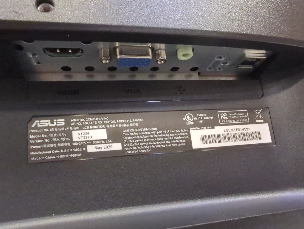 Black ASUS VT229H 21.5" Monitor 1080P IPS 10-Point Touch Eye Care with HDMI VGA, Black