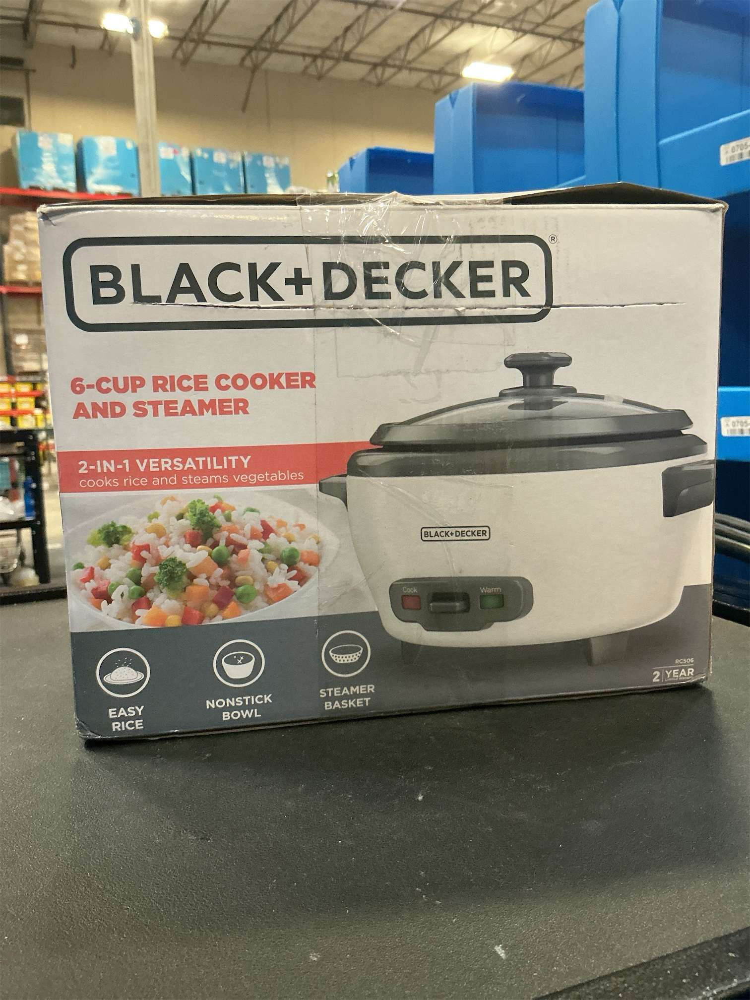 BLACK DECKER Rice Cooker 6-Cup (Cooked) with Steaming Basket, Removable Non-Stick Bowl, White
