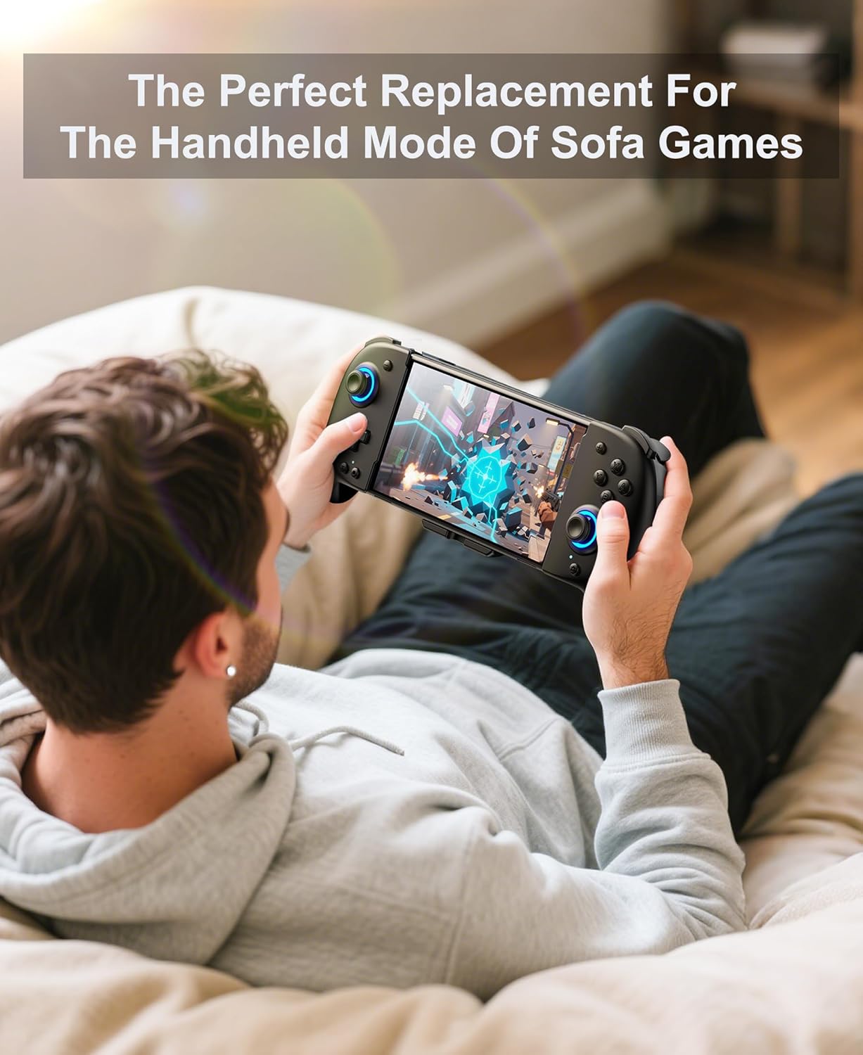 Updated One-Piece Switch Controller: Gammeefy Switch controller crafted with 360° palm-contour technology. Tested 50 grip iterations of the controller to fit perfectly in most gamers' hands, it reduces hand fatigue during 10 hour gaming marathons. In addition, the joysticks and buttons are designed in just the right place for easy operation. You can give it to yourself, your family or friends for a more comfortable gaming experience.