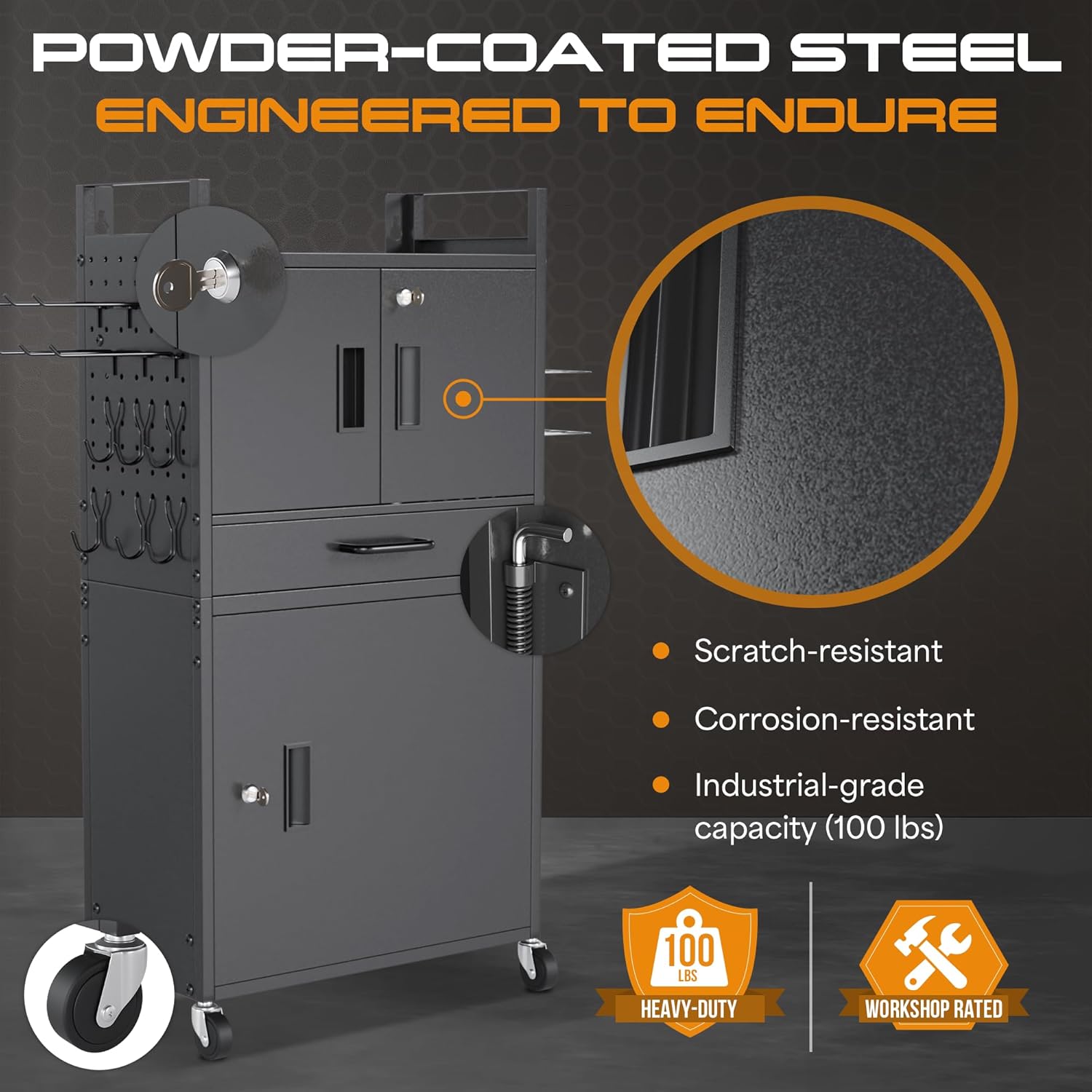 ROLL SMOOTHLY AND RELIABLY over your garage floor, driveway, or workspace with the wheels on this wall tool organizer. No more heavy lifting or dragging — this tool shelf organizer moves with you, so you can focus on what matters most: your masterpiece