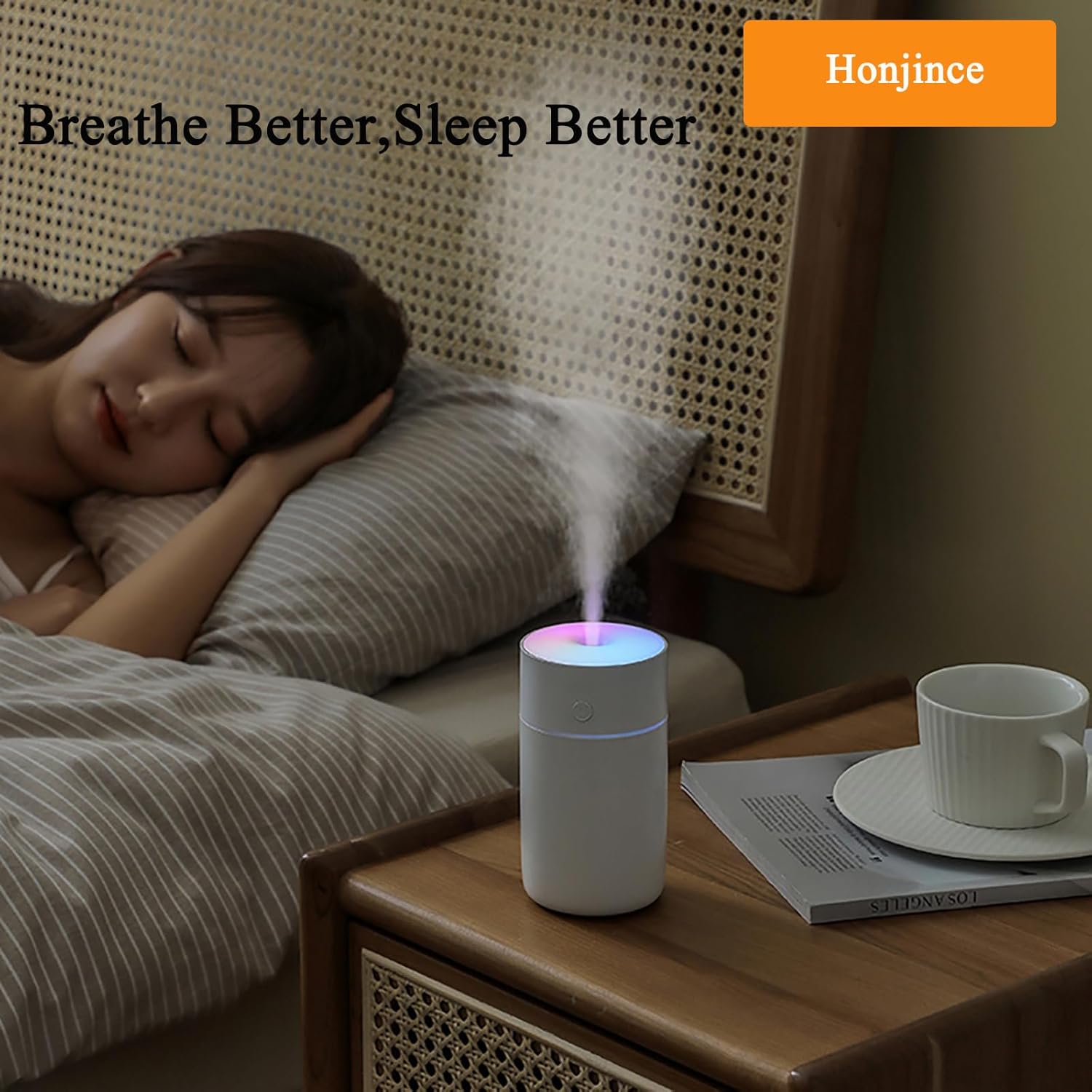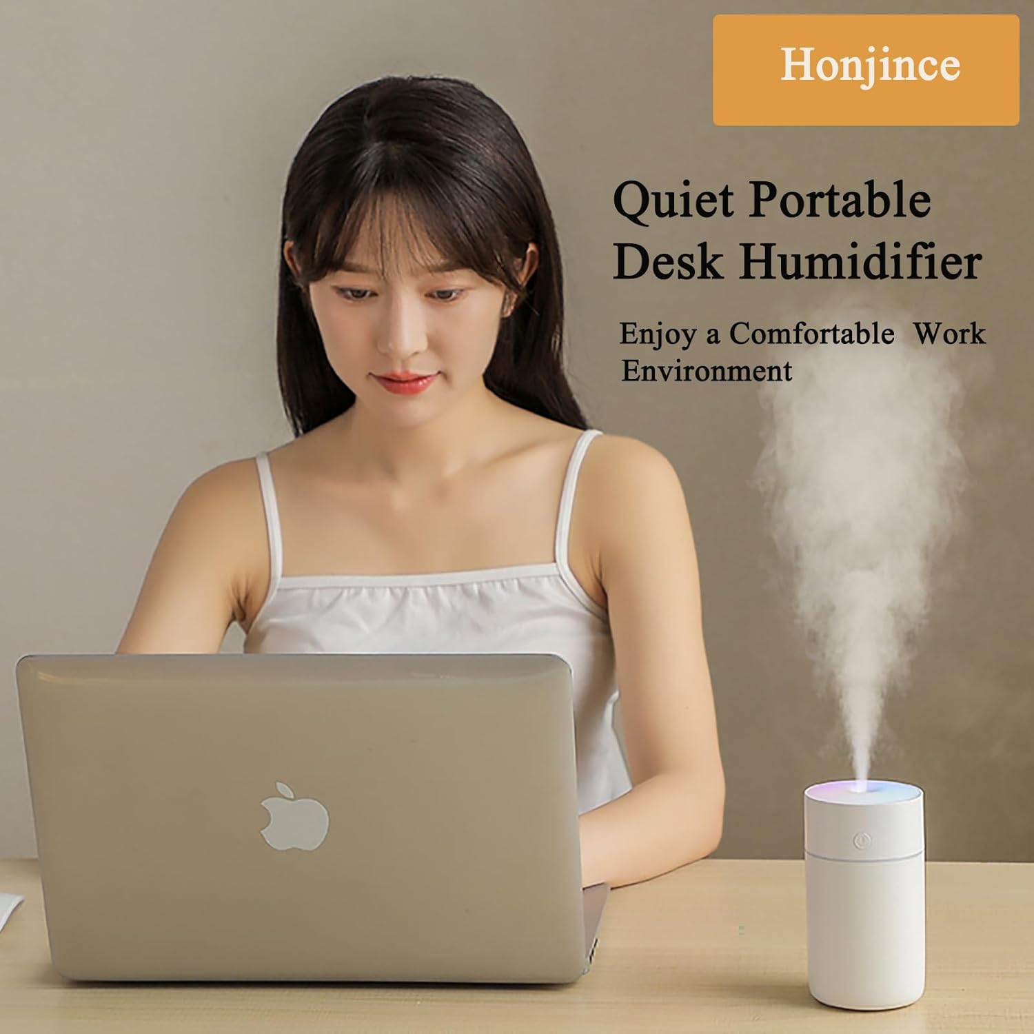 【Portable & Wireless】Honjince humidifier uses high-frequency technology to make fine, evenly dispersed cool mist. Built-in 1200mAh battery supports long-lasting wireless use—ideal for offices, baby rooms, cars, or on-the-go.