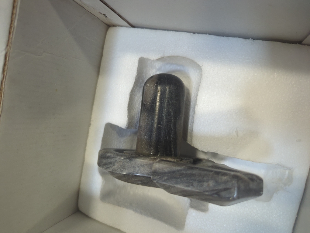 New open for inspection....StonKraft Handcrafted 4.25 inch Shiv Ling Idol/ Murti crafted in Grey/Black Natural Stone by artisans.