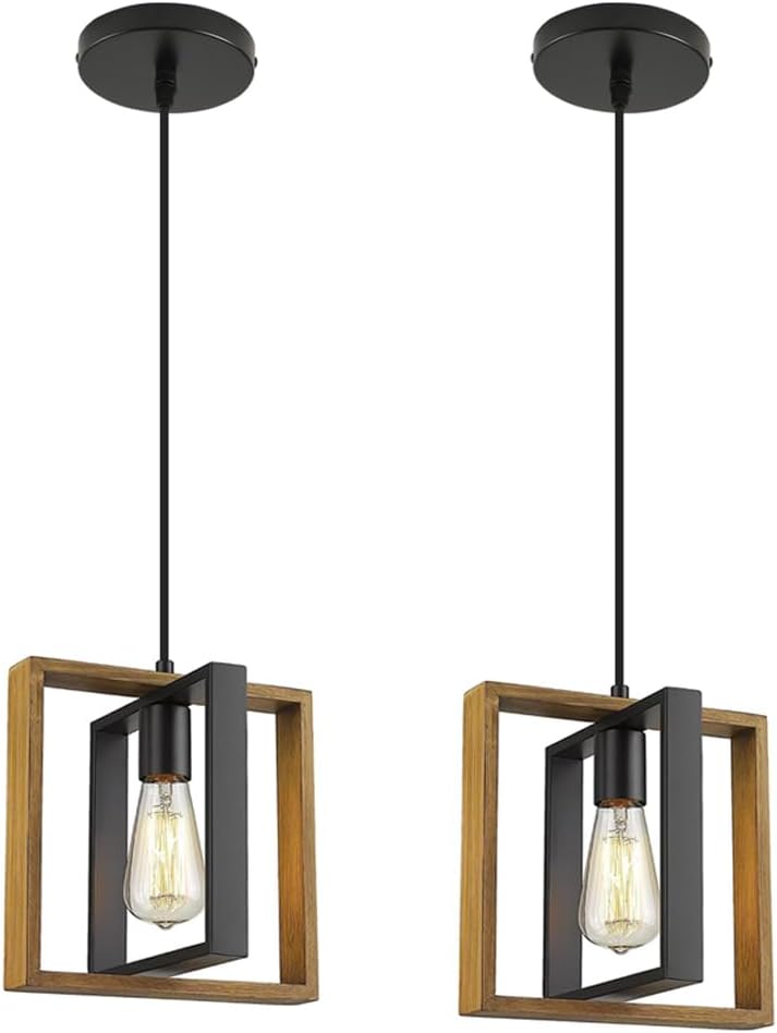 Black Pendant Lighting Modern Pendant Light, Adjustable Pendant Light Fixture,Pendant Lights Kitchen IslandLight (2 Packs Wood Metal Pendant Light)