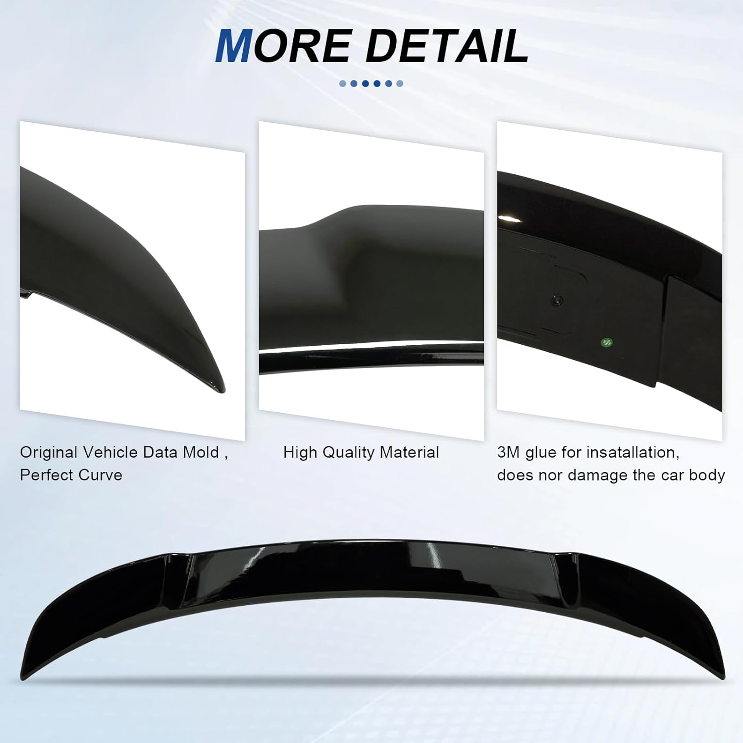 NO DRILL, INSTALLATION WITHIN 10MIN: Before installation, you need to clean the mounting position, tear off the tape film, align the mounting position to paste the spoiler, and the installation can be completed within 10min. (Tip: When the temperature is below 20°C (68°F), you can use a hair dryer to increase the viscosity of the double-sided adhesive.)