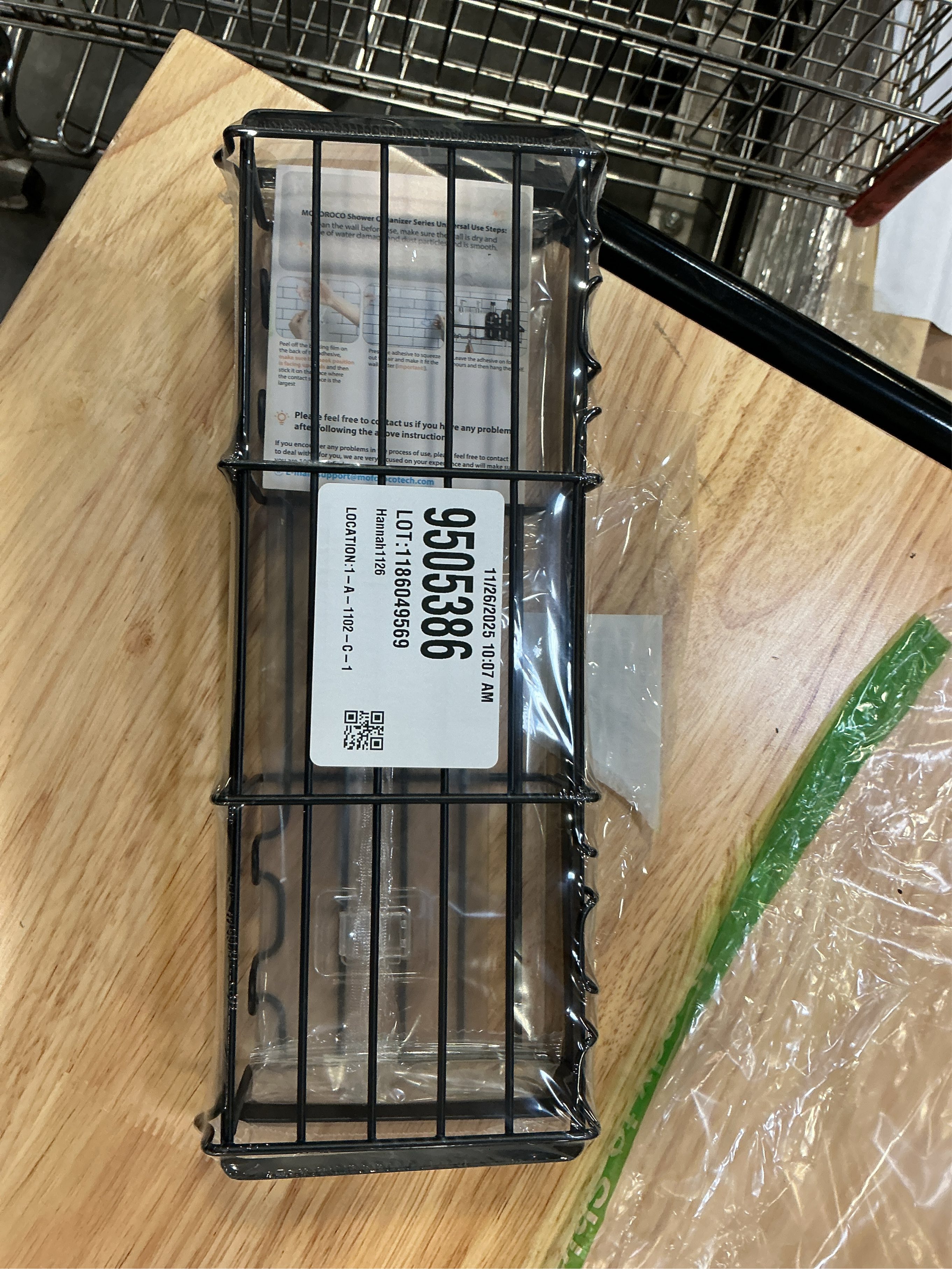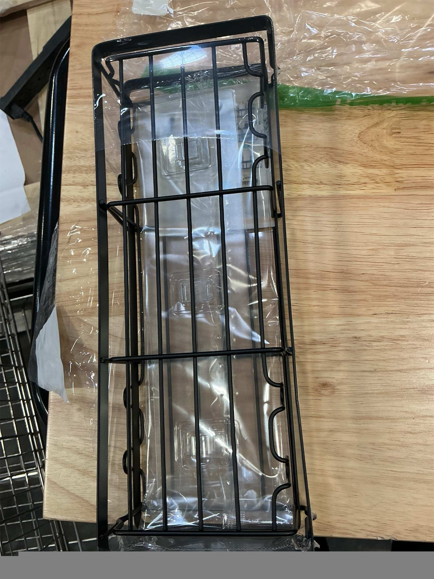 Black Shower Caddy – Rustproof Stainless Steel Bathroom Organizer Shelf with Hooks & Adhesive Mount – No-Drill, Waterproof, Wall-Mounted Storage Rack for Shampoo, Conditioner, Soap & More