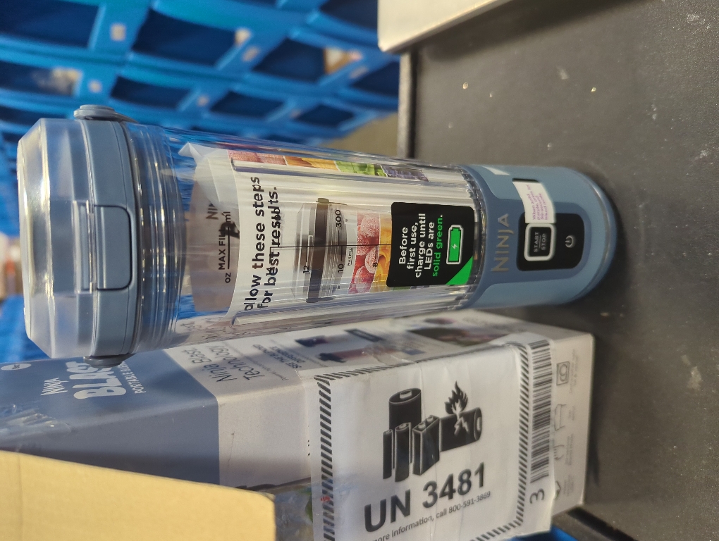 The NINJA blast portable blender brings high-speed NINJA blending power on the go with a cordless, hand-held design. The 18 oz. vessel is perfect for smoothies, protein shakes, and frozen drinks. Blast through frozen ingredients with NINJA blast blade assembly. NINJA blast is rechargeable via USB-C. 1-handed, easy-open sip lid and carrying handle make drinking on the go easier than ever.. Appliance Series: Not Applicable. Appliance Type: Blender. Base Material: Plastic. Blade Material: Stainless Steel. Blender Jar Capacity (oz.): 18. Blender Jar Material: Plastic. Blender Type: Jar Blenders. Capacity (L): 0.5. Color/Finish: Denim Blue. Color/Finish Family: Blue. Commercial Use: Residential. Dishwasher Safe Parts: Yes. Features: Built-In Timer,Cordless,Dishwasher Safe Parts,Self-Cleaning,Travel-Sized. Includes: Recipe Book,Travel Cup. Number of Speeds: 1. Preset Blending Functions: None. Product Weight (lb.): 1.73 lb. Returnable: 90-Day. Small Appliances Color Family: Blue. Small Electric Product Type: Blender. Wattage (W): 14.4 W. Certifications and Listings: UL Certified. Product Depth (in.): 3.5 in. Product Height (in.): 10.7 in. Product Width (in.): 3.5 in. Wattage (W): 14.4 W. Capacity (L): 0.5. Commercial Use: Residential. No of Speeds: 1. Blender Jar Material: Plastic. Blender Jar Capacity (oz.): 18. Appliance Type: Blender