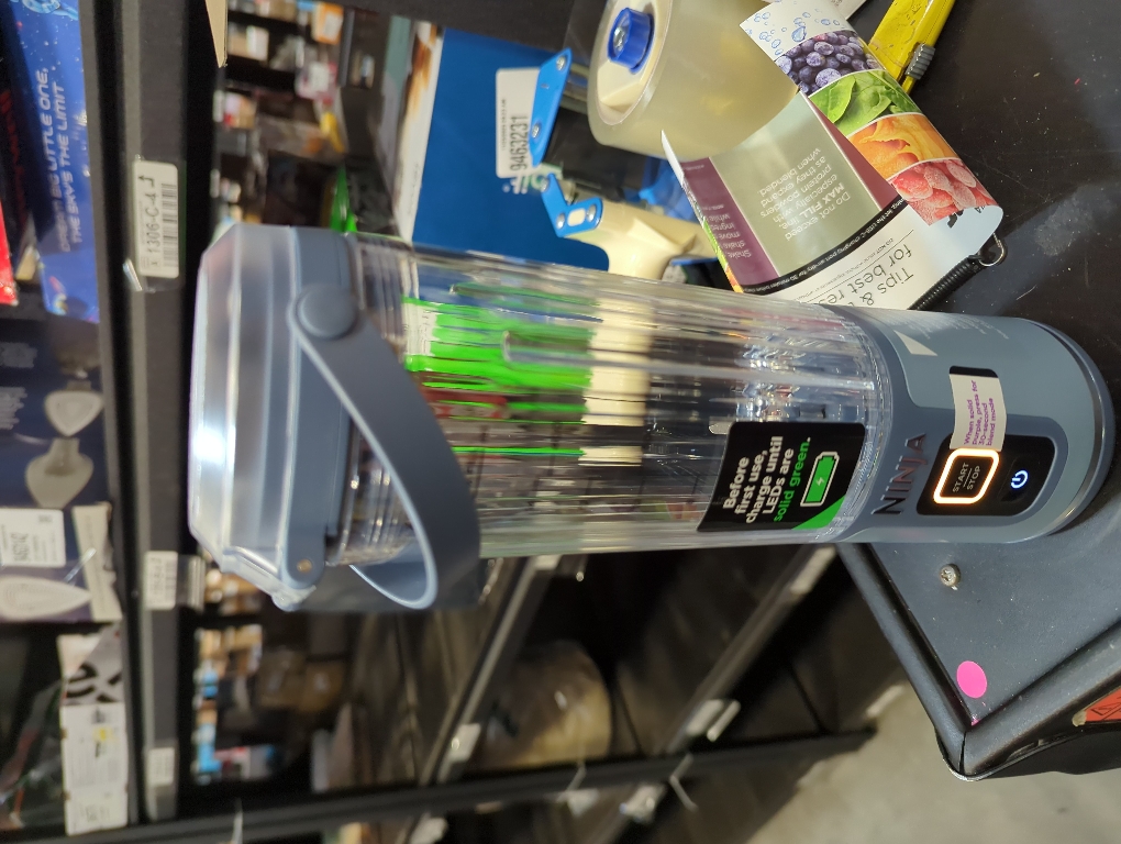 The NINJA blast portable blender brings high-speed NINJA blending power on the go with a cordless, hand-held design. The 18 oz. vessel is perfect for smoothies, protein shakes, and frozen drinks. Blast through frozen ingredients with NINJA blast blade assembly. NINJA blast is rechargeable via USB-C. 1-handed, easy-open sip lid and carrying handle make drinking on the go easier than ever.. Appliance Series: Not Applicable. Appliance Type: Blender. Base Material: Plastic. Blade Material: Stainless Steel. Blender Jar Capacity (oz.): 18. Blender Jar Material: Plastic. Blender Type: Jar Blenders. Capacity (L): 0.5. Color/Finish: Denim Blue. Color/Finish Family: Blue. Commercial Use: Residential. Dishwasher Safe Parts: Yes. Features: Built-In Timer,Cordless,Dishwasher Safe Parts,Self-Cleaning,Travel-Sized. Includes: Recipe Book,Travel Cup. Number of Speeds: 1. Preset Blending Functions: None. Product Weight (lb.): 1.73 lb. Returnable: 90-Day. Small Appliances Color Family: Blue. Small Electric Product Type: Blender. Wattage (W): 14.4 W. Certifications and Listings: UL Certified. Product Depth (in.): 3.5 in. Product Height (in.): 10.7 in. Product Width (in.): 3.5 in. Wattage (W): 14.4 W. Capacity (L): 0.5. Commercial Use: Residential. No of Speeds: 1. Blender Jar Material: Plastic. Blender Jar Capacity (oz.): 18. Appliance Type: Blender