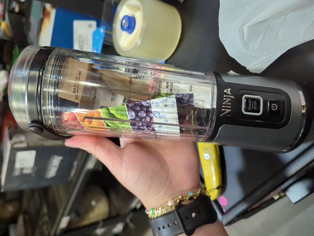 The Ninja Blast Portable Blender brings high-speed Ninja blending power on the go with a cordless, hand-held design. The 18 oz. vessel is perfect for smoothies, protein shakes, and frozen drinks. Blast through frozen ingredients with Ninja's BlastBlade Assembly. Ninja Blast is rechargeable via USB-C. One-handed, easy-open sip lid and carrying handle make drinking on the go easier than ever.. Appliance Series: Not Applicable. Appliance Type: Blender. Base Material: Plastic. Blade Material: Stainless Steel. Blender Jar Capacity (oz.): 18. Blender Jar Material: Plastic. Blender Type: Jar Blenders. Capacity (L): 0.5. Color/Finish: Black. Color/Finish Family: Black. Commercial Use: Residential. Dishwasher Safe Parts: Yes. Features: Built-In Timer,Cordless,Dishwasher Safe Parts,Self-Cleaning,Travel-Sized. Includes: Recipe Book,Travel Cup. Number of Speeds: 1. Preset Blending Functions: None. Product Weight (lb.): 1.73 lb. Returnable: 90-Day. Small Appliances Color Family: Black. Small Electric Product Type: Blender. Wattage (W): 14.4 W. Certifications and Listings: UL Certified. Product Depth (in.): 3.5 in. Product Height (in.): 10.7 in. Product Width (in.): 3.5 in. Wattage (W): 14.4 W. Capacity (L): 0.5. Commercial Use: Residential. No of Speeds: 1. Blender Jar Material: Plastic. Blade Material: Stainless Steel. Appliance Type: Blender