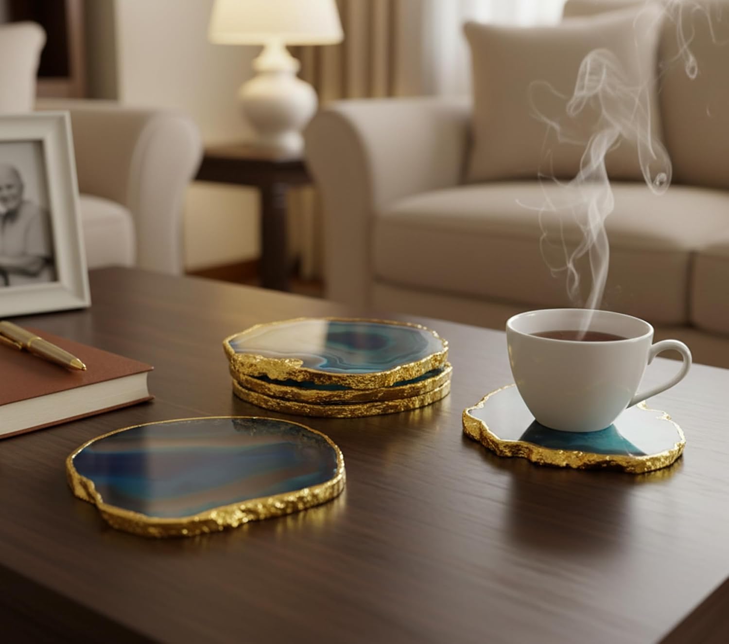 This agate coaster set makes for a unique, extra-ordinary housewarming, hostess gift or Use it at home with barware or tea/ coffee set etc. These Natural Agate Coasters adds style and utility to your living space for sure.