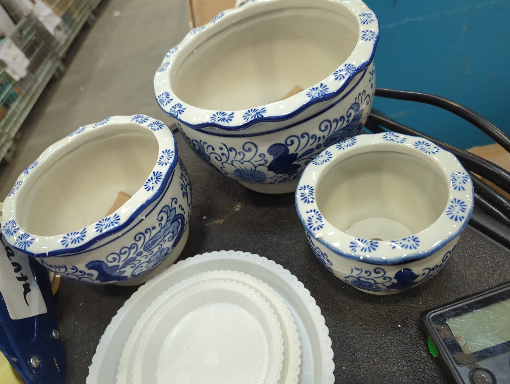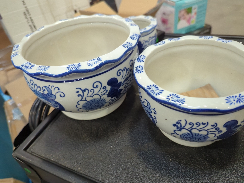 Chinoiserie Design: Blue and white planter made of superior high temp fired ceramic, burnt finish adds blue and white color appearance. The plant pots looks great in apartments on windowsills, tabletops, bookshelves, coffee tables, offices, bedrooms, kitchens, gardens, patios and home decor