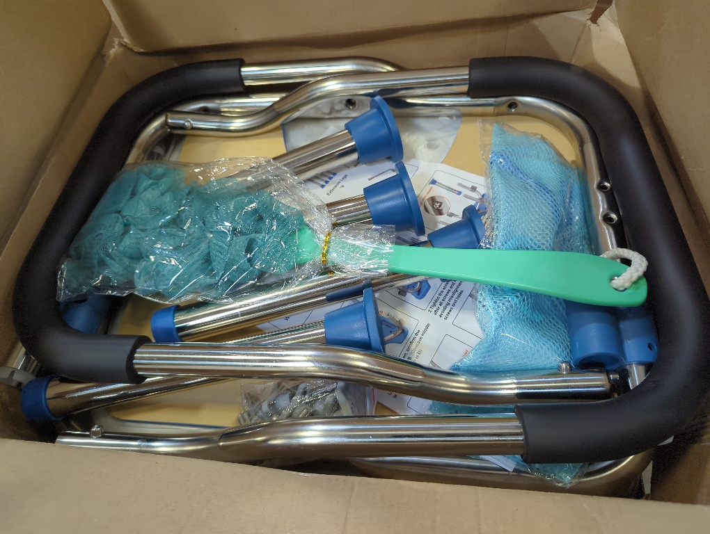 【Package List】1x u-shaped shower chair with armrests 1x shower loofah 1x toiletry bag 1x soft padded seat 1 x instruction.
