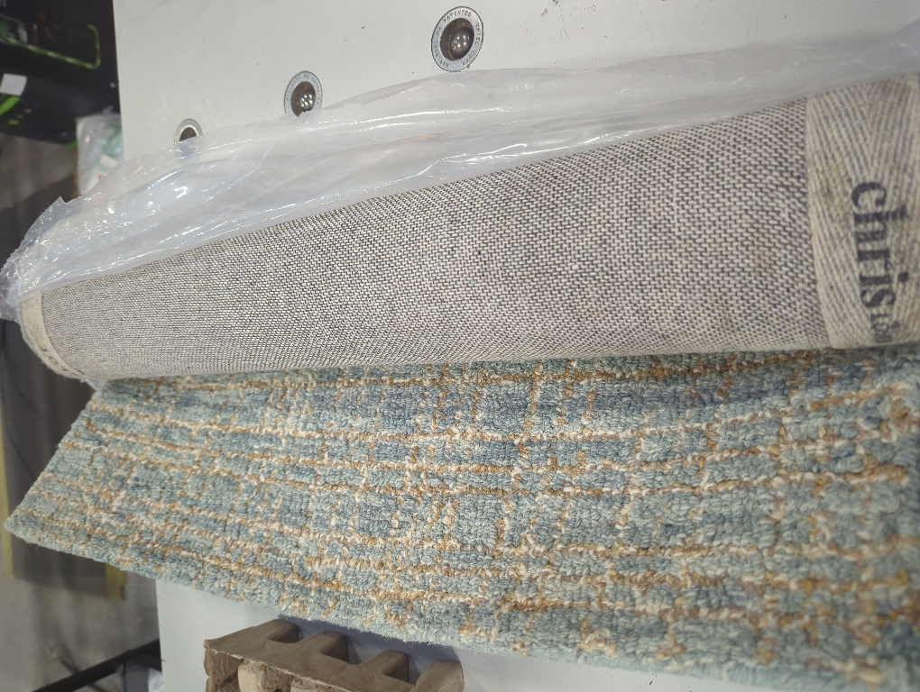 Hand-tufted of wool and jute pile, the Polly collection for Chris Loves Julia x Loloi brings a fresh take on modern yet classic designs. With striking gridded designs toned down by a neutral color palette, Polly is a timeless choice for any room. Polly is also GoodWeave certified, ensuring our commitment to ethical production and the support of weavers' communities.. Backing Material: No Backing. Cleaning Instructions: Spot clean. Color Family: Blue. Color/Finish: Blue / Sand. Construction: Hand-Made. Features: Stain Resistant. Flooring Product Type: Area Rug. Hub Required: No hub connection available. Indoor/Outdoor: Indoor. Location Type: Bathroom,Bedroom,Dining Room,Entryway,Kitchen,Living Room,Office. Pattern: Geometric,Striped. Pile Height: Medium Pile. Recycled Materials (%): 0. Returnable: 90-Day. Rug Material: Jute,Wool. Rug Weight (lbs.): 4.6. Shape: Runner. Theme: Unthemed. Weave Type: Tufted. Pile Height (in.): 0.38 in. Product Length (in.): 45 in. Product Thickness (in.): 0.38 in. Product Width (in.): 27 in. Shape, Exact W x L: Runner, 2'3" x 3'9". Pile Height: Medium Pile. Rug Material: Wool. Pattern: Geometric. Rug Material: Jute. Pattern: Striped. Location Type: Living Room. Cleaning Instructions: Spot clean. Shape: Runner