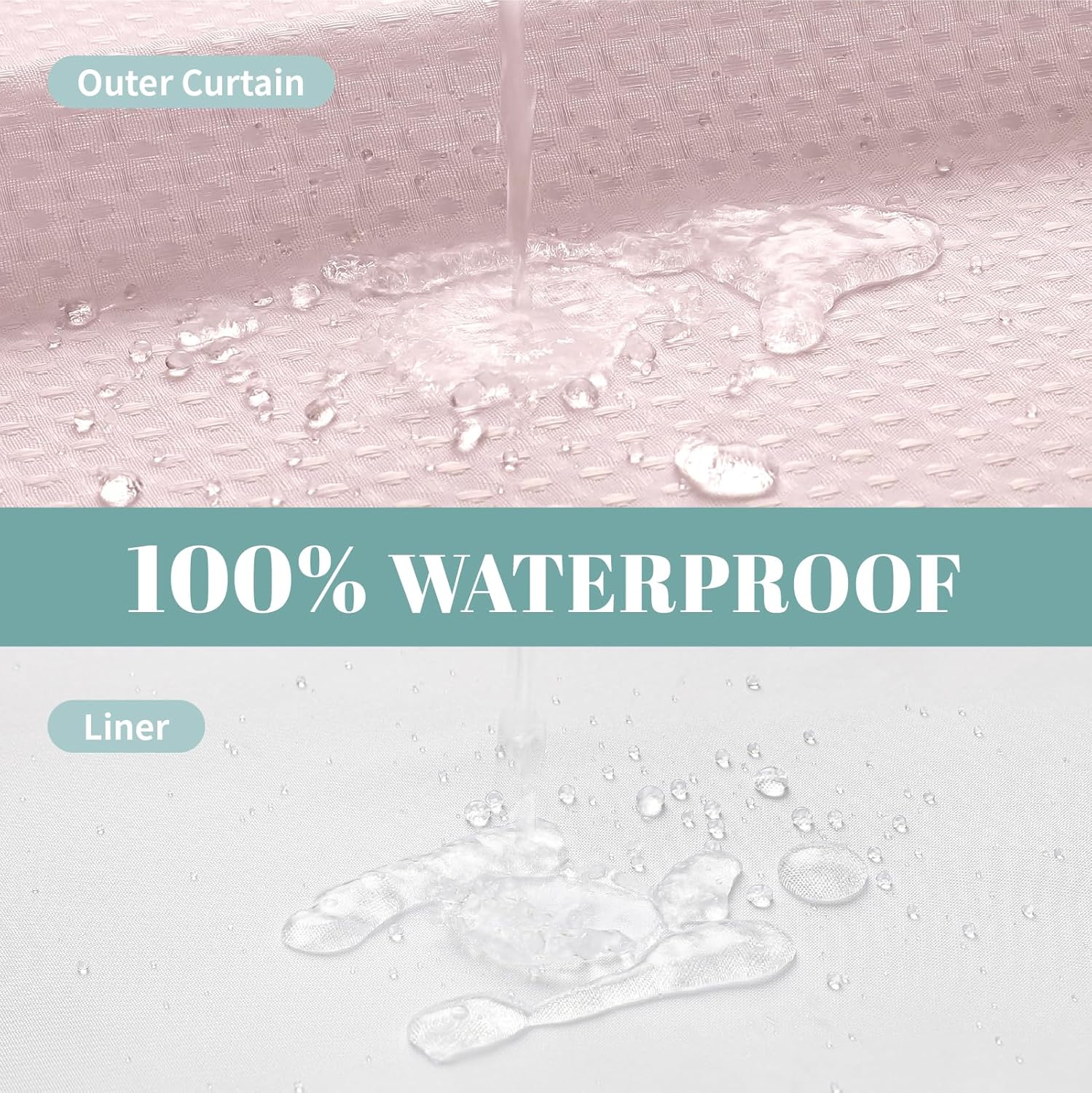 【Shower Curtain with Snap-On Liner】:This snap-on fabric shower curtain liner is easily detachable, making it convenient for cleaning or replacement.Equipped with 2 magnets at the bottom corners for added stability and to prevent splashing