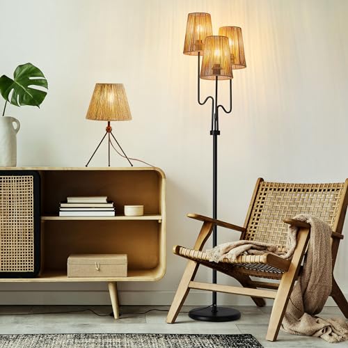 3. Boho Floor Lamp, 68in. Rattan Floor Lamps with Rattan Shade,3 Light Tree Standing Lamp for Bedroom,Nursery,E26 Socket, Living Room Floor Lamp for Rustic,Coastal, Beach or Bohemian Decor (Black)