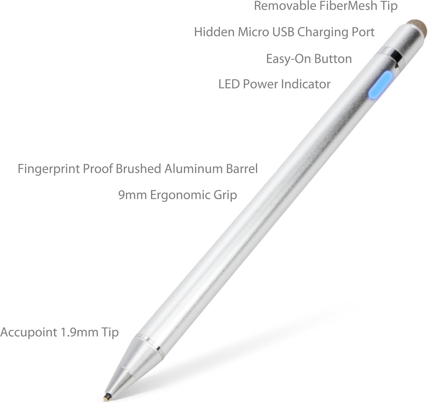 BoxWave Stylus Pen Compatible with Eonon Q04PRO - AccuPoint Active Stylus (2-Pack), Electronic Stylus with Ultra Fine Tip - Metallic Silver