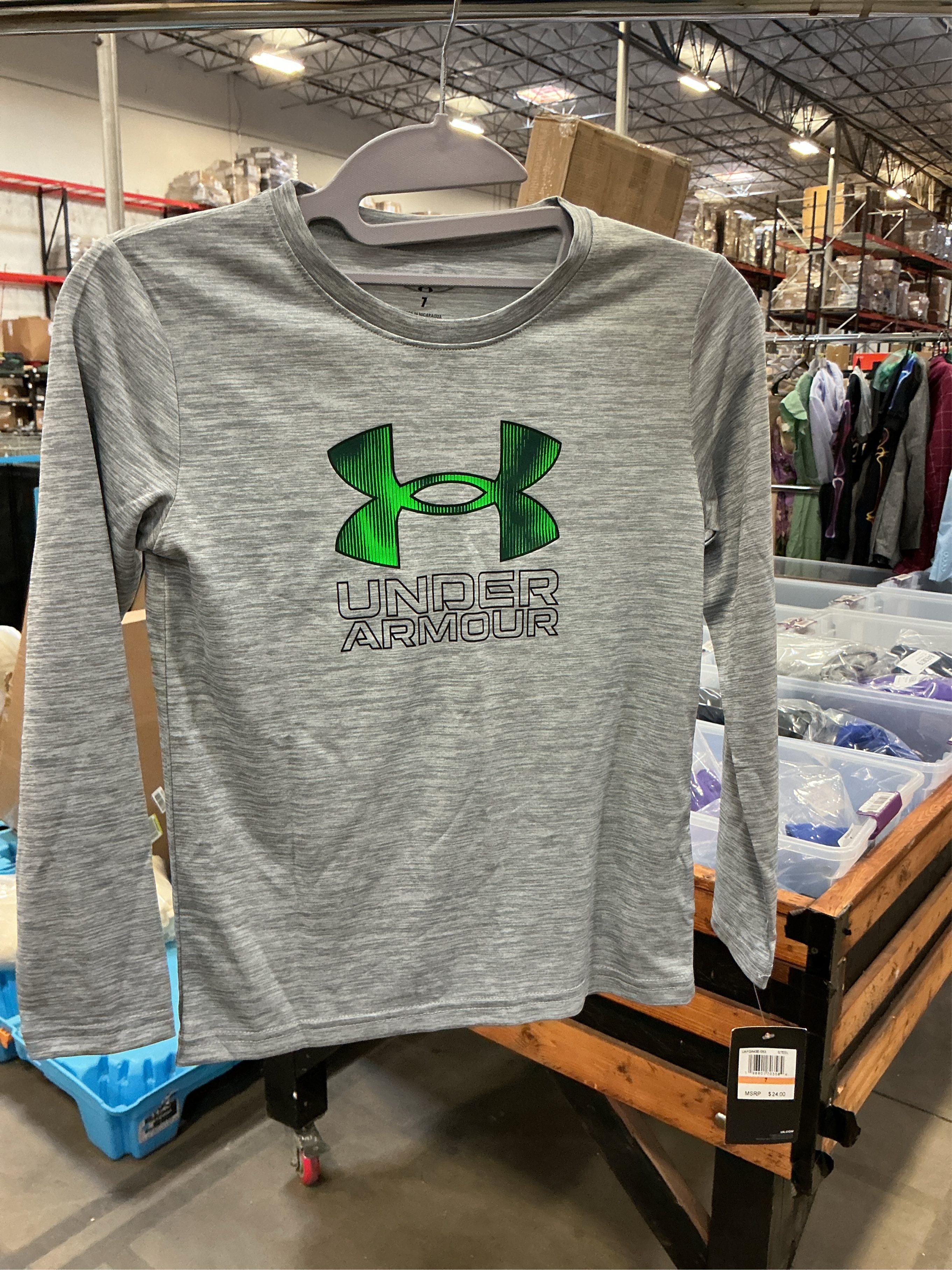 Boys 7. Under Armour Valley Etch Lockup Long Sleeve Tee, Boy's, Size: 7, Light Grey