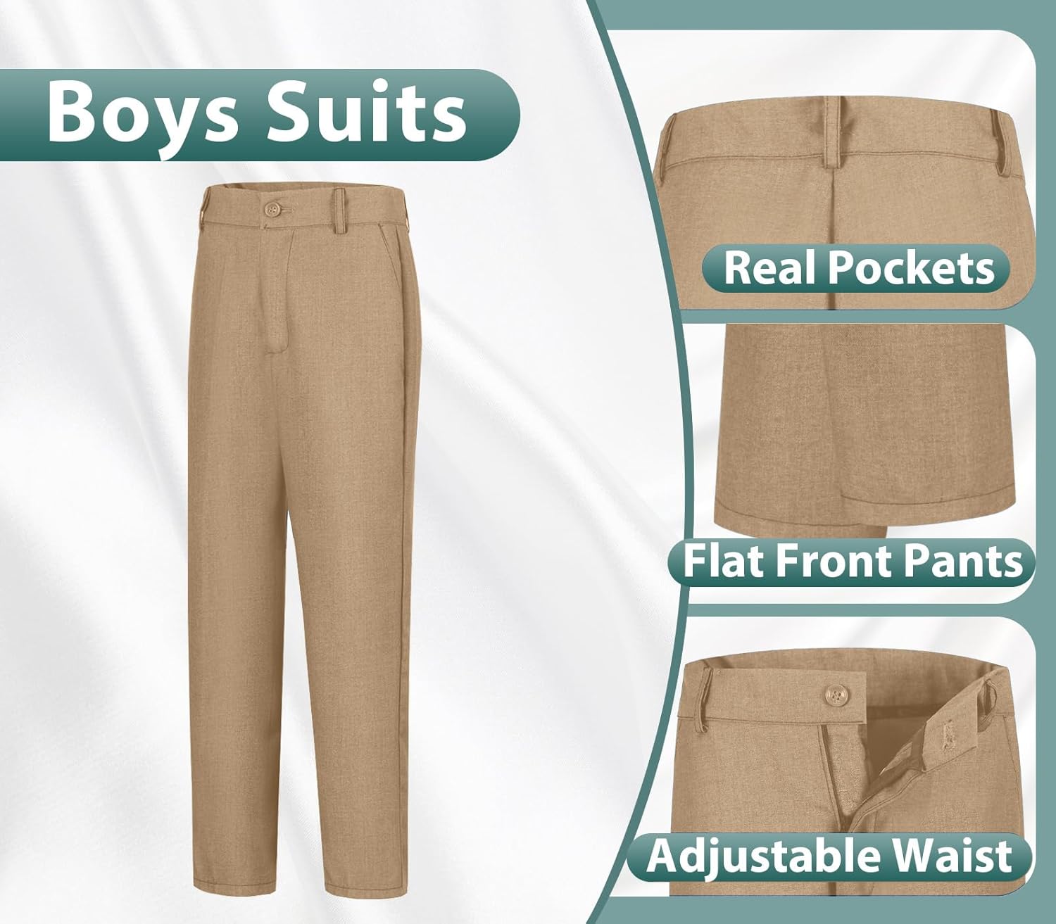 Exquisite Design of Boys' Suits-Our slim fit boy suit set is purely handmade with a double button single breasted design, with real pockets on the chest and waist for children to fit their belongings. The waist of the pants is adjustable, making it comfortable to wear without any discomfort