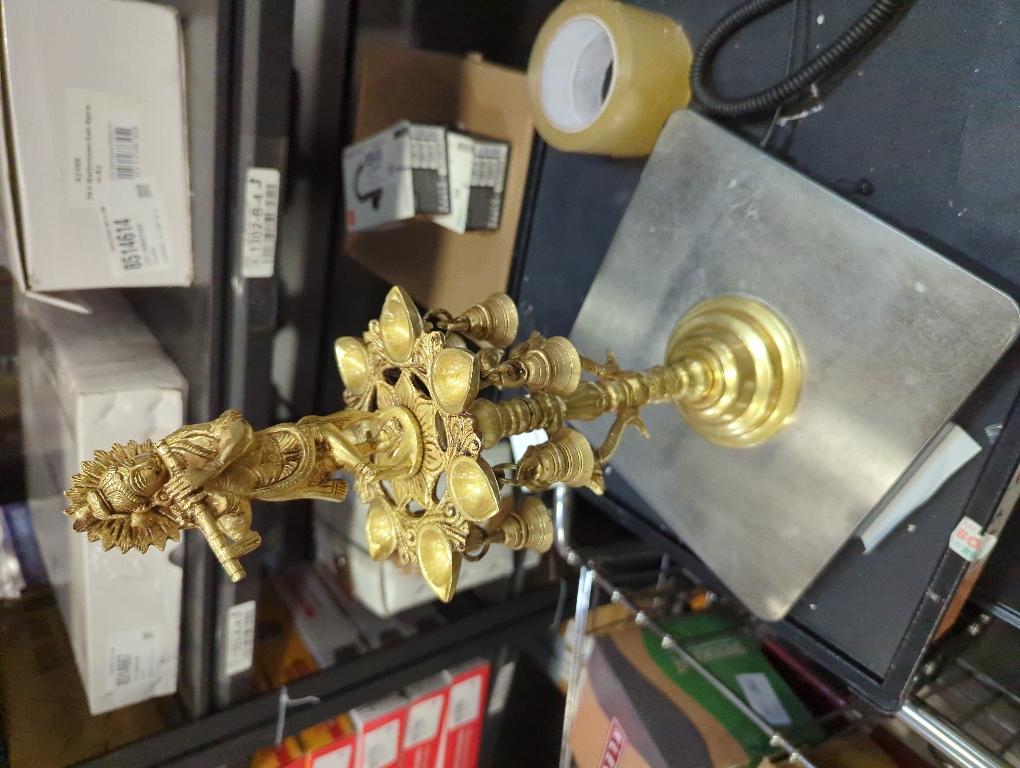(damaged box)Handcrafted Krishna Brass Diya using traditional peacock design.
