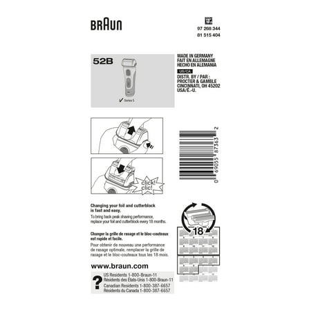 To maintain your best shave, we recommend replacing the shaver head every 18 months Made in Germany By routinely replacing your shaver head, your shaver will stay at peak performance for years One small investment, and your shaver is reset to new Over 18 months your Braun electric shaver will cut over 6,000,000 hairs, gradually reducing cutting performance 52B Silver 0.05 lb