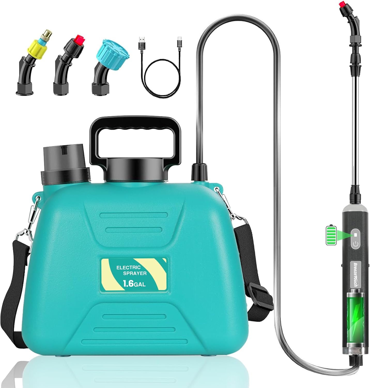 Breeze Touch 4000mAh Battery Powered Sprayer 1.6 Gallon Upgrade Electric Sprayer w/USB Rechargeable Handle, Length Adjustable Telescopic Wand Shoulder Strap, Water Weed Sprayers in Lawn Garden Yard