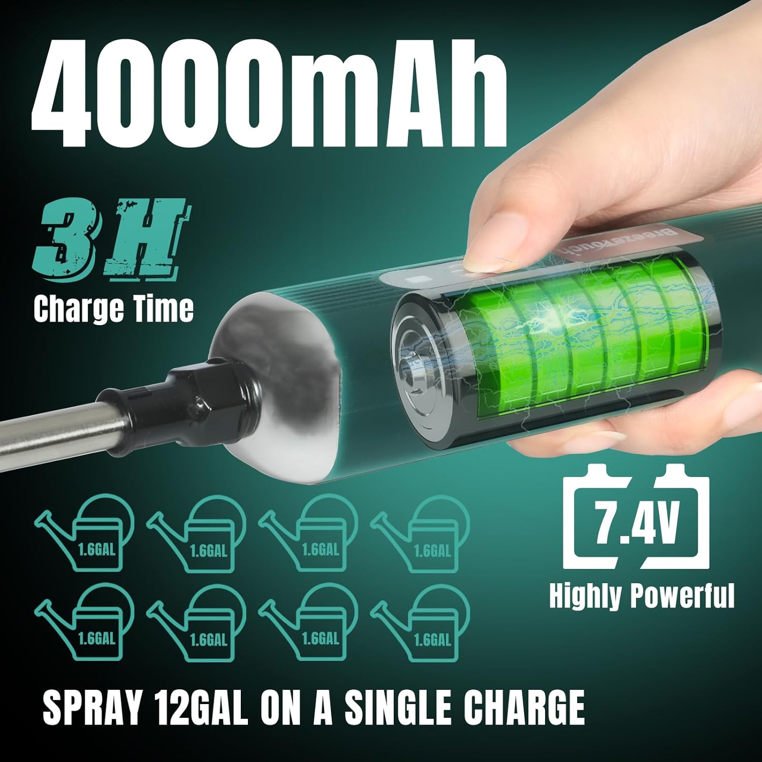 【Powerful & Long-Lasting】:Our garden sprayer features a 4000 mAh battery and a 7.4 V brushless motor. This gives our weed sprayer a longer-lasting battery life, allowing for over 3 hours of continuous operation and the capability to spray 12 gallons of water on a single charge. You can complete their gardening tasks without needing to recharge mid-way. Additionally, our lawn & garden sprayers boast stronger power, ensuring a steady and consistent spray.