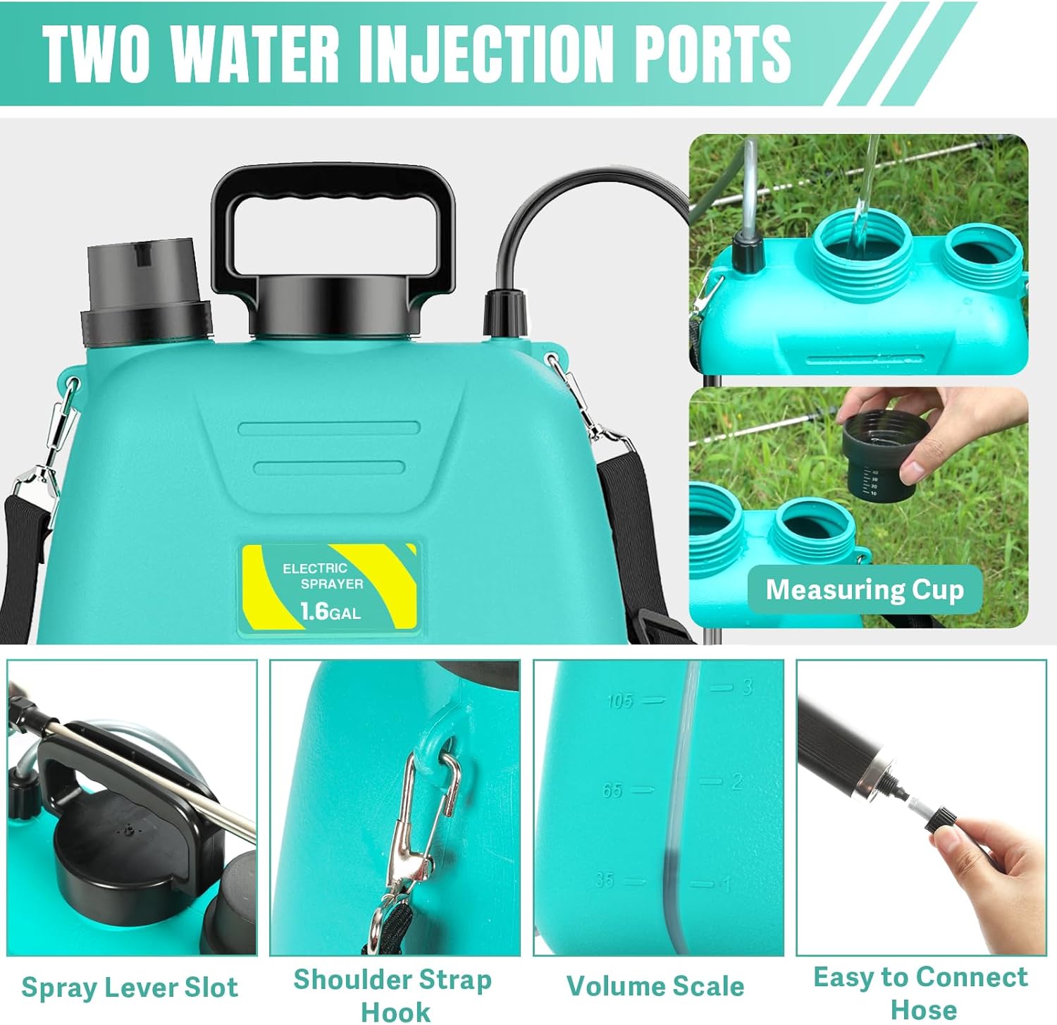 【User-Friendly Design】:Our chemical sprayer features a battery-powered handle for easy, one-button spray control with no manual pumping needed. It includes dual filling ports for effortless water and solution mixing, a telescopic tube for extended reach, and a measuring cup for precise measurements. The adjustable shoulder strap and ergonomic handle offer multiple carrying options for maximum comfort and convenience. This water sprayer is ideal for efficient and versatile spraying.