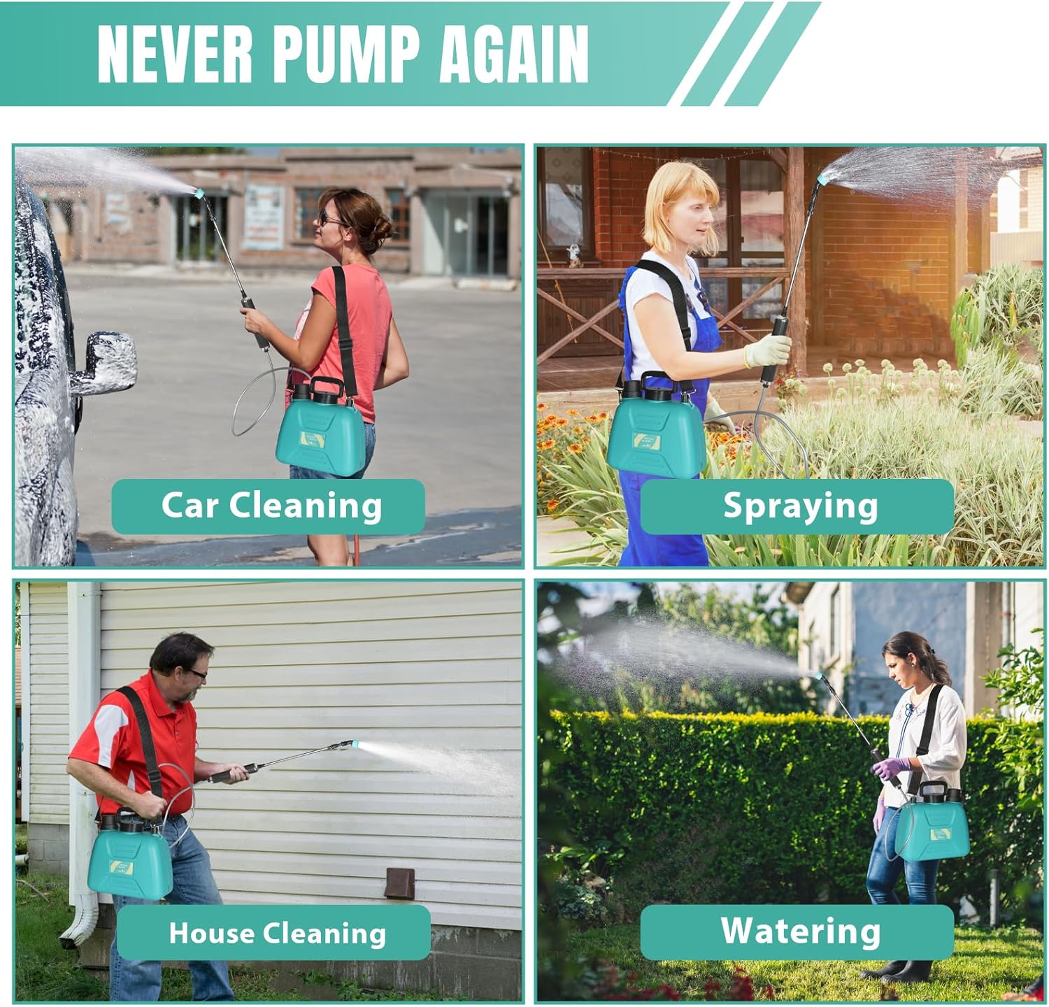 【Wide Application】:Our 6 L/1.6 GAL battery sprayer is an ideal helper. It waters plants, applies fertilizers, and remove weeds with ease. It sprays liquids effortlessly. In addition, it cleans homes and cars and sprinkles the yard. Whether you're managing your garden or your home, this electric sprayer is your reliable assistant.
