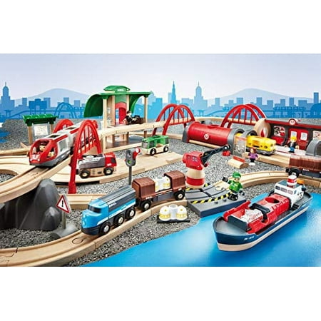 Product includes – The Deluxe Railway Set is an action-packed train set that includes passenger trains, freight trains, harbour scenes and metro fun. It’s complete with stations, cranes, bridges and figures. A must have for any train lover. Perfect for the creative toddler - Start your budding train engineer off on the right track with a Deluxe Railway wooden toy train set. It’s the perfect gift at Christmas or over the holiday season for the creative toddler - designed for ages 3 and up, with batteries included. Compatibility - As your child develops, so can their railway play as the 33052 Deluxe Railway Set is compatible with all other BRIO railway toys. Develops important skills - Playing with train sets helps children to understand and learn about their environment in a fun way. Safe for your child - We conduct more than 1,000 safety tests a year to ensure that our products conform to all safety standards, and we take pride in developing toys that are completely safe for children to play with.