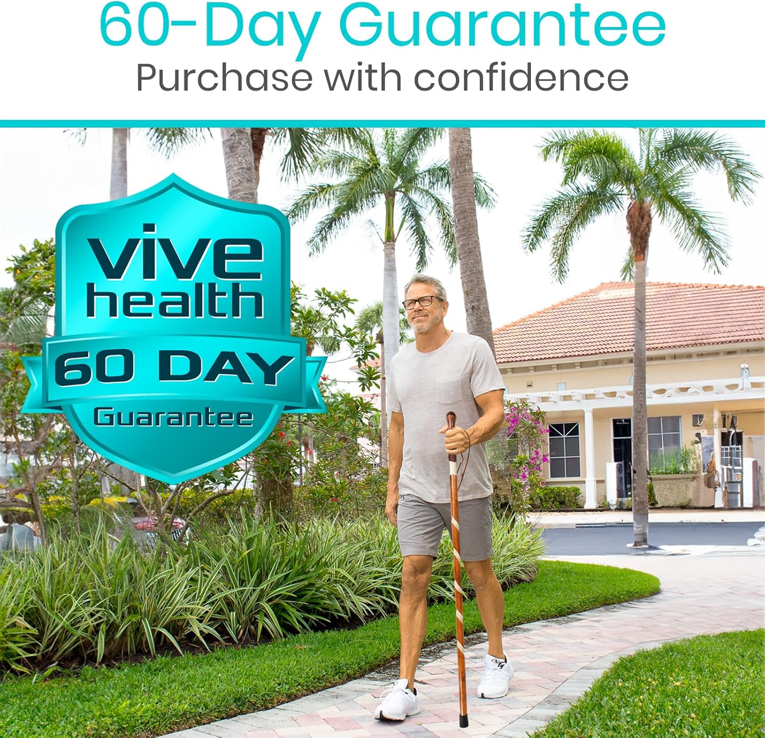 EASY-GRIP ROPE HANDLE & LEATHER WRIST STRAP: The Vive Carved Wooden Walking Stick includes a leather wrist strap and rope handle. These features let you grip your walking stick with more security and greater ease—increasing comfort and relieving wrist tension/fatigue.